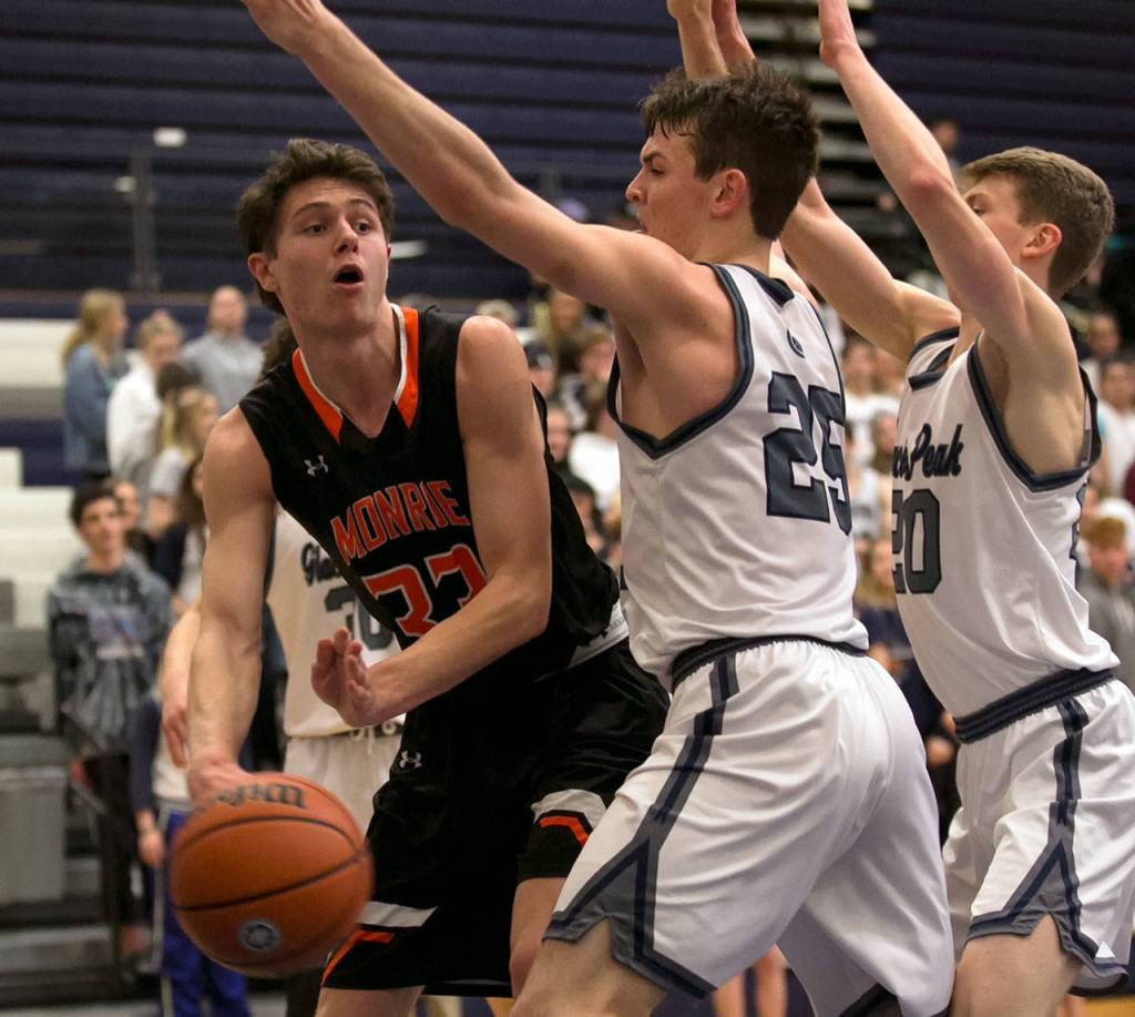 Glacier Peak (17-2, 12-1 Wesco 4A) beat Monroe (15-4, 10-3) 72-53 earlier this year, but the Bearcats were without arguably the league’s top player, 6-foot-7 Princeton commit Colby Kyle, for most of the game after he exited early in the second quarter with a wrist injury.