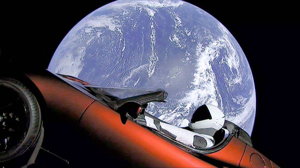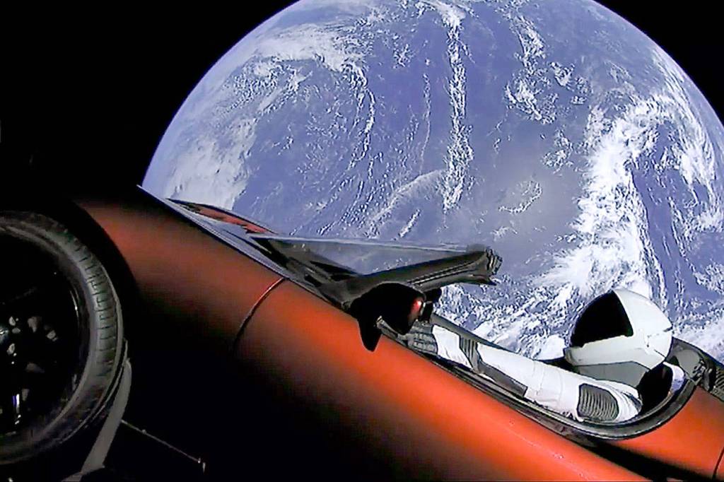 Viewers were left with video images beamed from space of Musk’s red Roadster circling the blue planet after the protective covering had dropped away and exposed the car. A space-suited mannequin was at the wheel, named “Starman” after the David Bowie song.