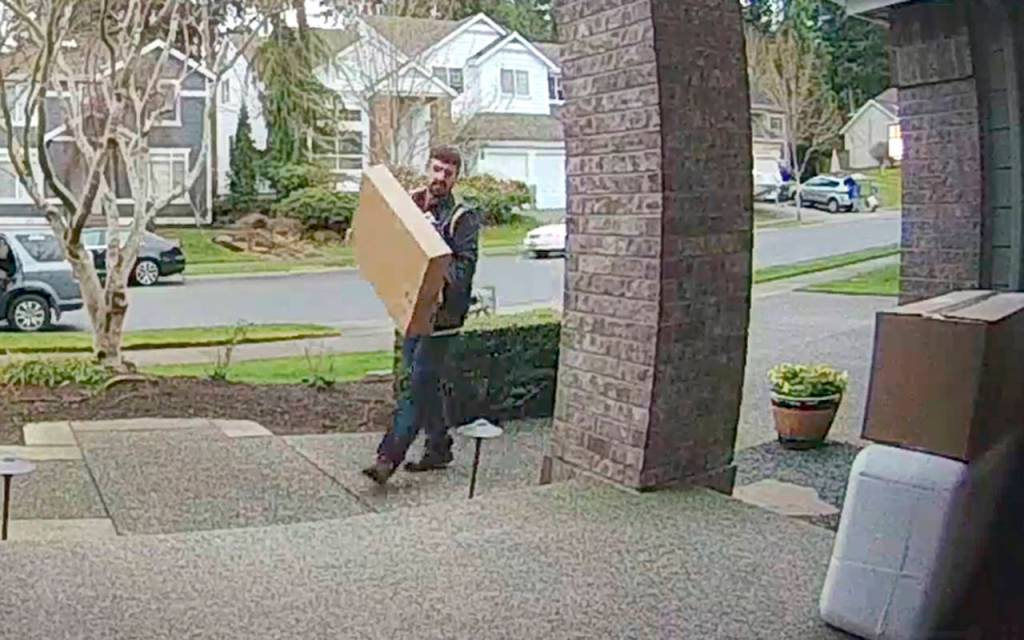 On Jan. 26, the suspect carried an empty package to a house on 145th Street SE. He dropped off the box on the front porch and picked up another package that previously had been delivered, city spokeswoman Joni Kirk said. He walked it over to a blue SUV. He reportedly made a second trip to grab another large box on the porch.