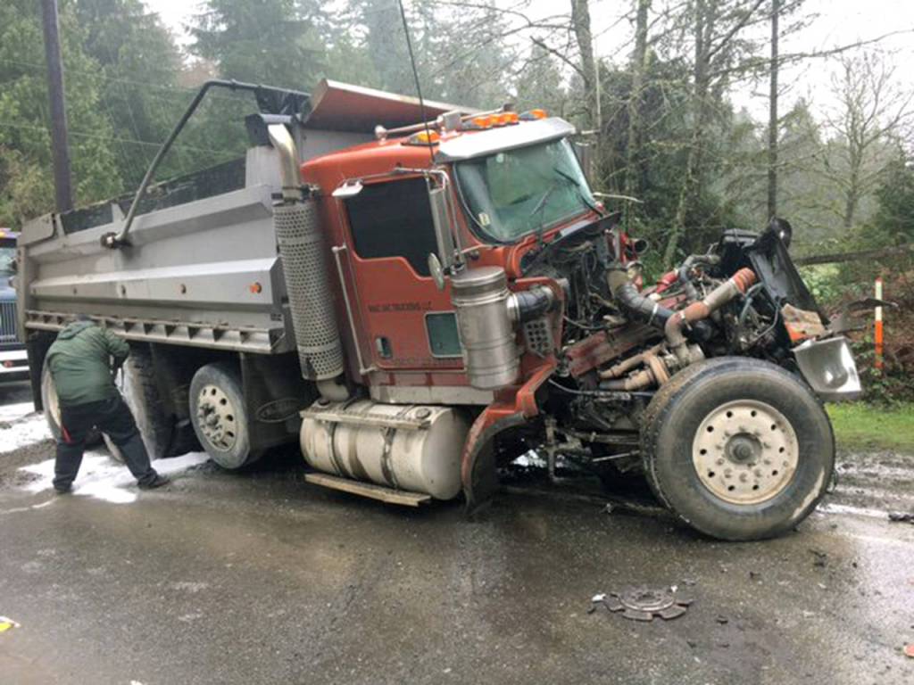 Several gallons of oil and fuel spilled. The state Department of Ecology was called in. The road was closed while crews worked to clean up the mess.