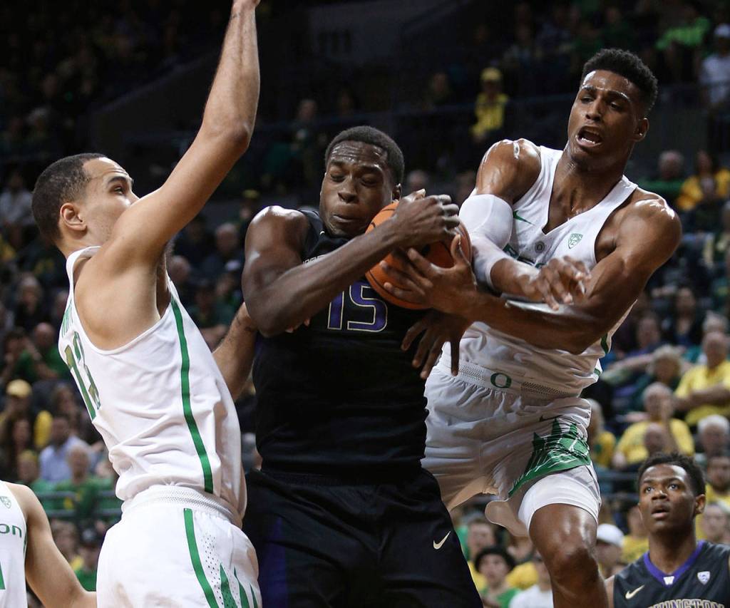 “Just one of those games defensively, we did what we had to do. We just couldn’t score enough points,” Huskies coach Mike Hopkins said. “I thought in the first half, foul trouble hurt us being able to get a good offensive rhythm. We couldn’t get a good flow. You gotta give Oregon the credit there. They’re switching defenses.”