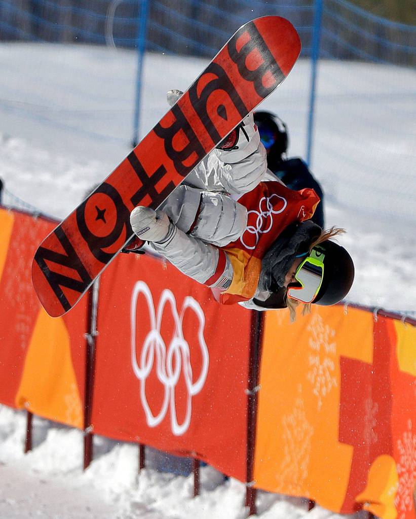 Gregory Bull / Associated Press                                Chloe Kim (of the United States) jumps during the women’s halfpipe finals at Phoenix Snow Park at the 2018 Winter Olympics in Pyeongchang, South Korea on Tuesday.