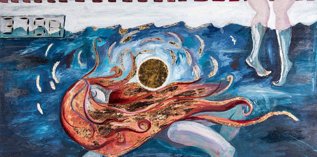 “Swimming Pool Sun” is one of Abigail Dahl’s latest works and her current favorite. It’s a 4-by-2 oil painting.