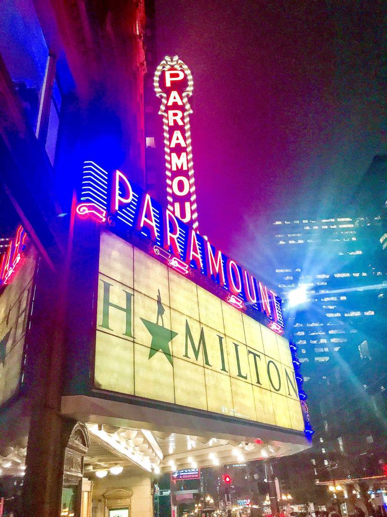 The excitement began as soon as I saw the “Hamilton” marquee glimmering on a Seattle street corner at Pine Street and Ninth Avenue. Inside, the Paramount lobby was abuzz with people lining up for $70 “Hamilton” hoodies and $30 “A. Burr” hats. I scored a “Hamilton” bag that cost me a Hamilton bill.