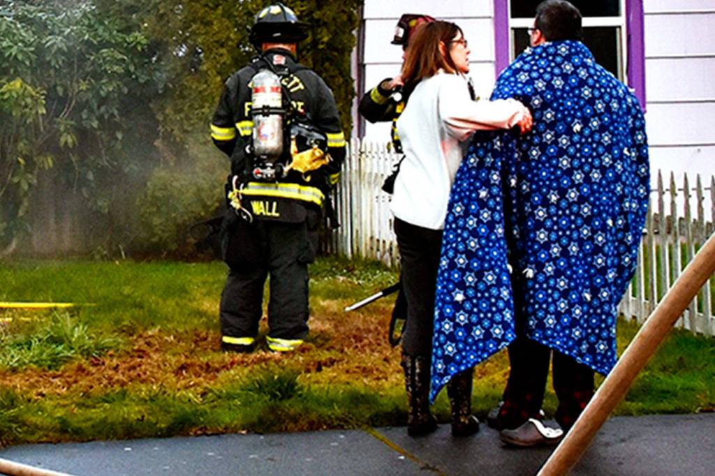 Two men escaped the home unhurt. Neighbors wrapped them in blankets, and gave them shoes for their bare feet.