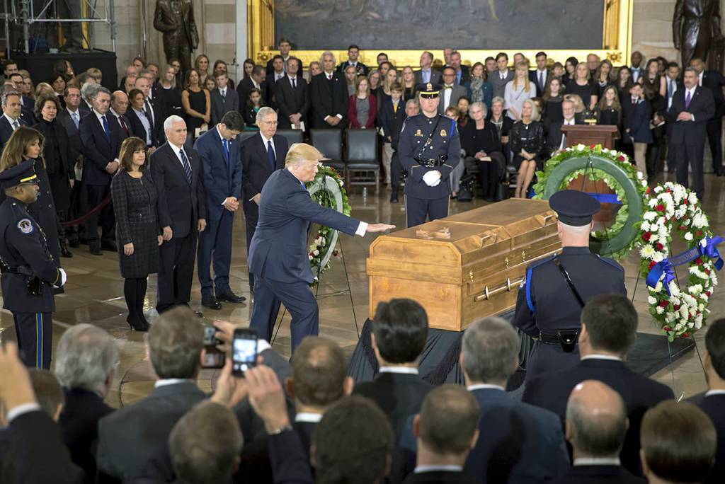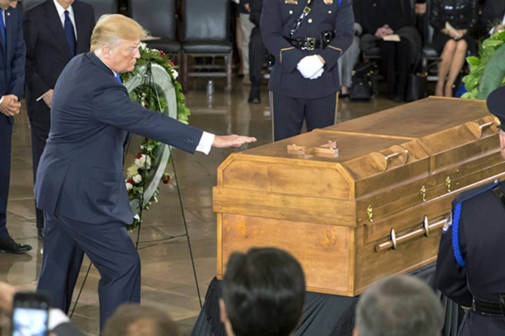 On Wednesday, he watched television coverage of Graham lying in honor in the U.S. Capitol.