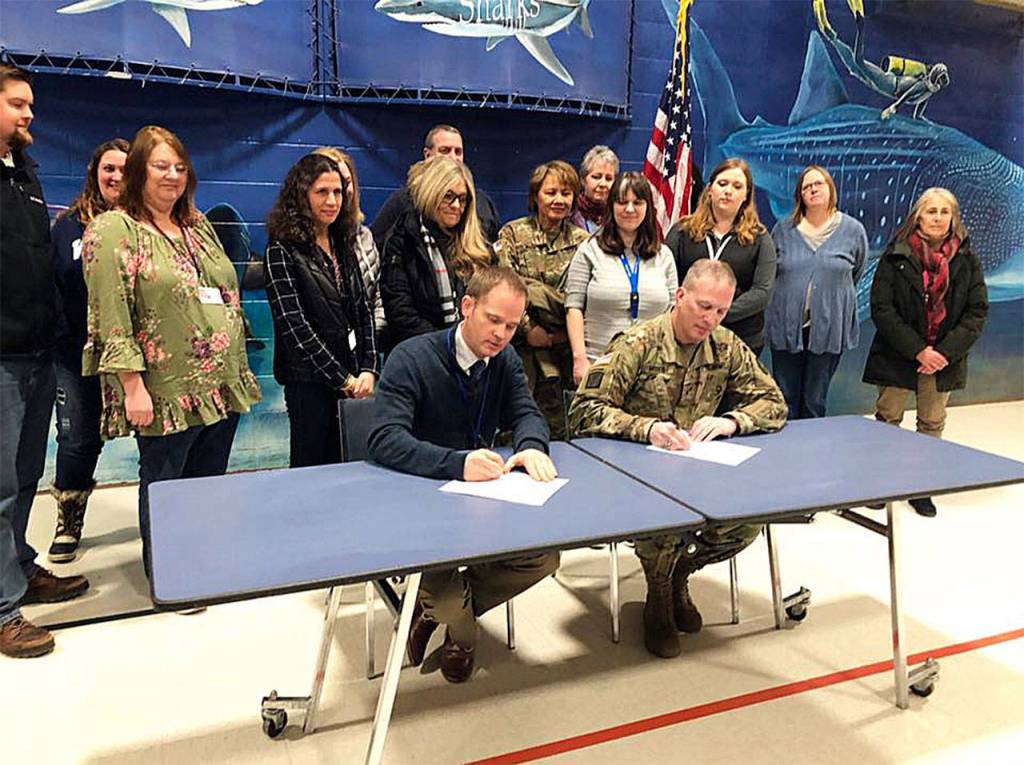 The U.S. Army Reserve’s 364th Sustainment Command (Expeditionary) is partnering with Shoultes Elementary School in Marysville. A signing ceremony was held Feb. 22 at the school to mark the new relationship.