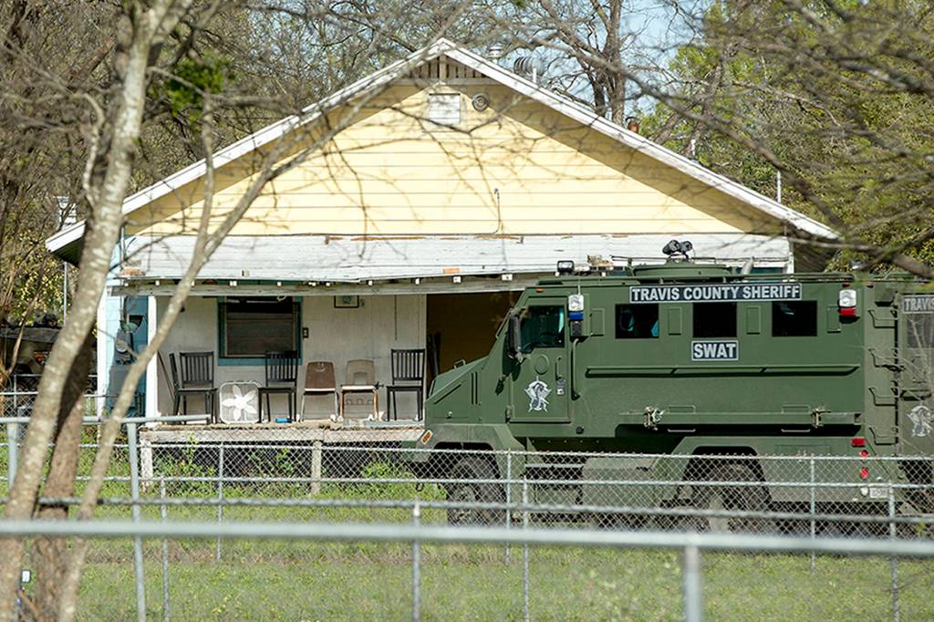In Pflugerville, federal and local law enforcement officials searched two sheds and trash bins outside the Conditts’ multistory home. The shades were drawn, and a U.S. flag flew out front.
