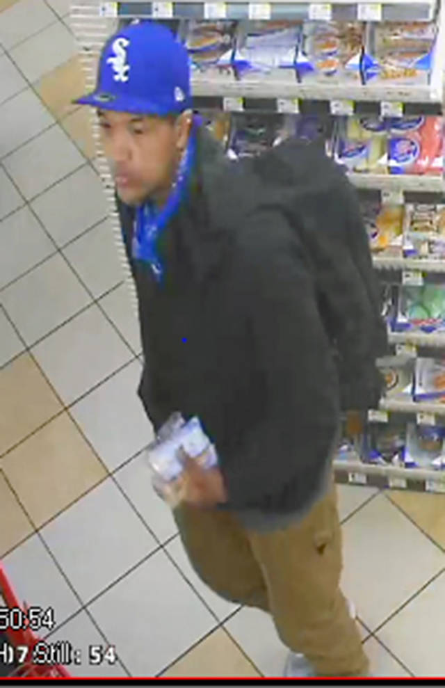 On social media, the sheriff’s office posted still photos of a suspect in a blue and white Chicago White Sox hat, with a blue-and white bandana around his neck. The images show him wearing a black backpack, a black jacket, tan pants and gray and white shoes. He ran from the scene.