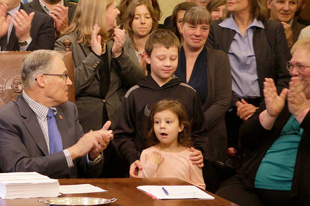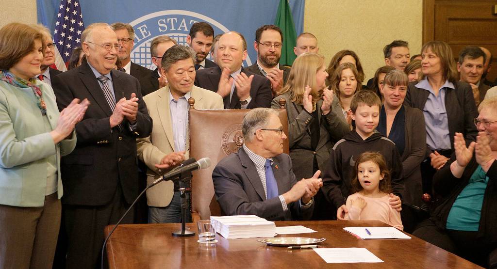 “Our motivation has always been the kids,” Inslee told reporters after the bill signing. “We believe that by satisfying the McCleary decision we satisfied a higher purpose, which is our moral responsibility to our kids and our grandchildren. And I feel good about that.”