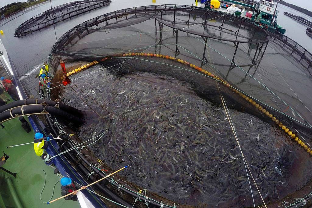The Washington state Legislature last session passed and Gov. Jay Inslee has signed into law a phaseout of Atlantic salmon net-pen farming in Washington, with no new leases allowed after the current ones expire by 2025.