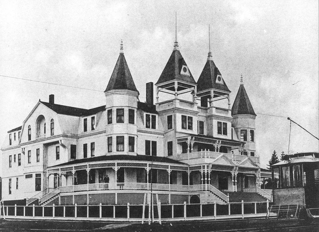 The 14,396-square-foot wooden hotel on the corner of Pacific and Kromer avenues was three stories high, had 80 rooms, large verandas and elegant turrets built in the Stick and Queen Anne styles. It was a extravagant affair.