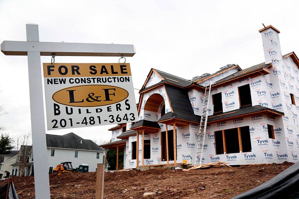 An unfinished house is seen for sale in Franklin Lakes, New Jersey, in February. (AP Photo/Seth Wenig)