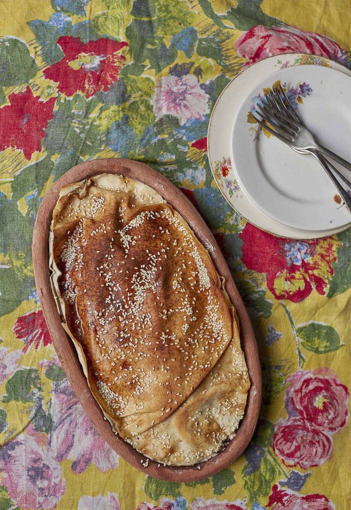 Lavash, chicken and herb pie with barberries