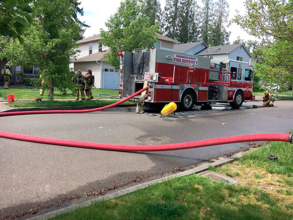 The fire was out within 10 minutes of firefighters arriving, said Heather Chadwick, a spokeswoman for Fire District 7.