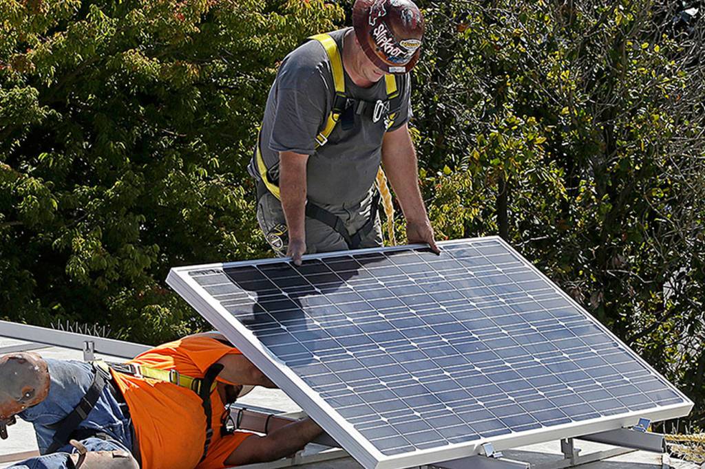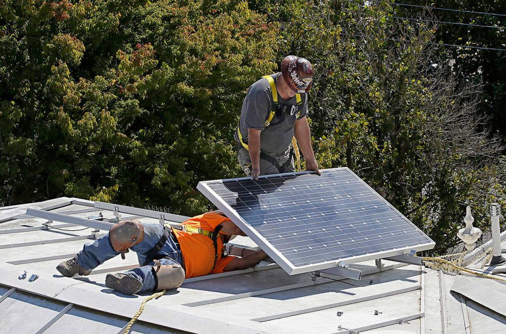 A solar panel is installed on the roof of the Old Governor’s Mansion State Historic Park in Sacramento, California, in 2015. (Rich Pedroncelli / Associated Press)