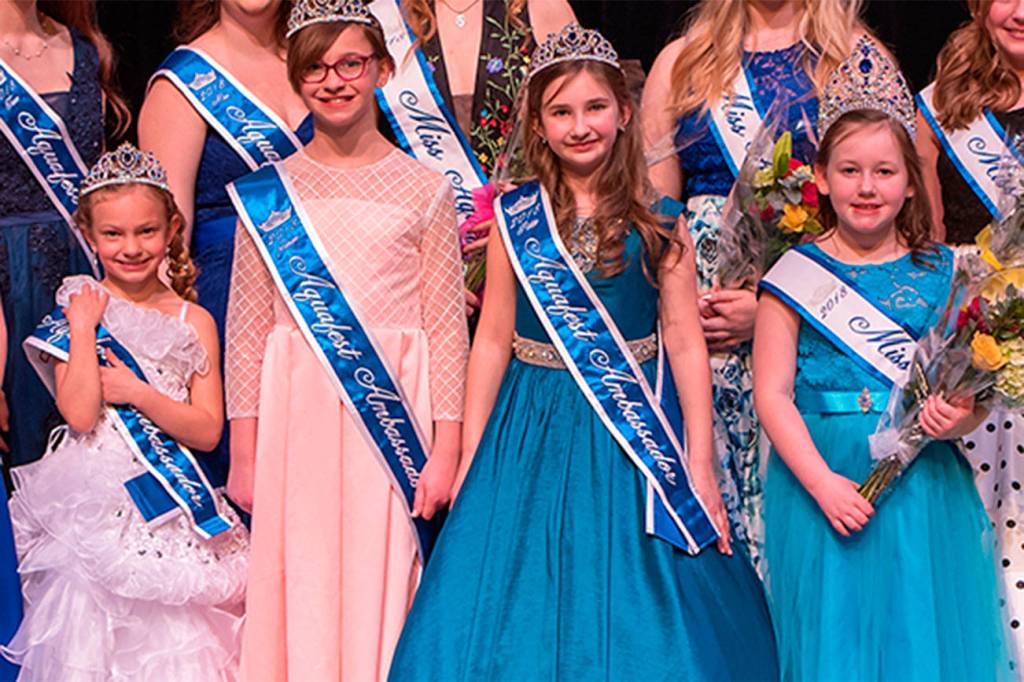 The Lake Stevens Miss Aquafest Pageant was held April 14 at the Everett Performing Arts Center. Eighteen girls, ages 5 to 18, competed for 11 titles in the competition, which includes scholarship awards and judged categories like interview, personal introduction, casual wear, on-stage question and formal wear.