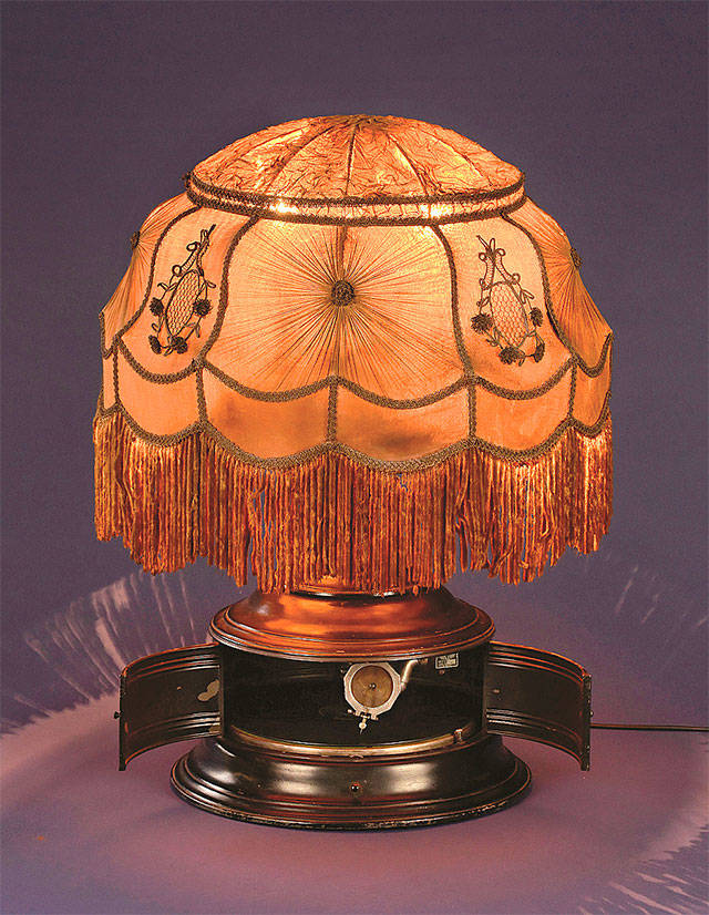 A design called a phonolamp was made about 1920. It had an electric motor, metal case and an embroidered lampshade. These combination lamps soon went out of style but are liked by phonograph collectors. A rare, working phonolamp recently was sold in a German auction for $1,967.