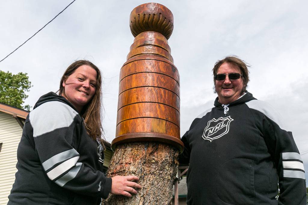 The carved Stanley Cup at the corner of 19th and Cedar streets is Illiad and Roxy Gesler’s way of sporting their love for the game.