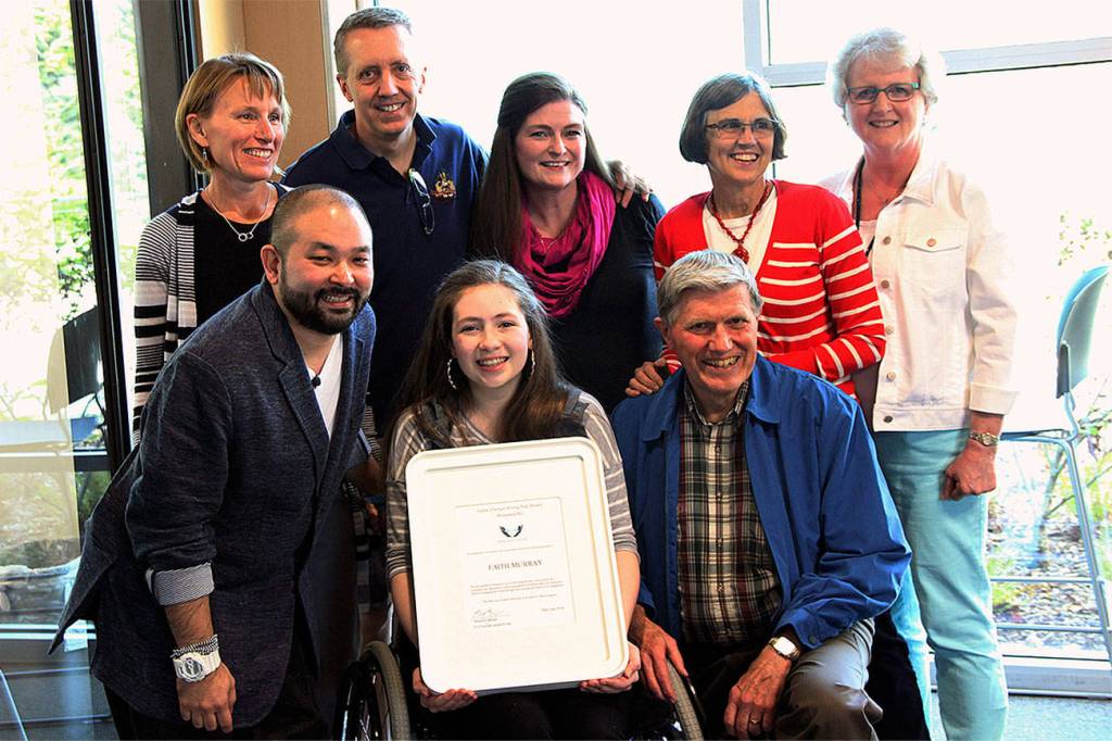 Faith was honored for helping many nonprofits. She recently created her own nonprofit, Hope Group, in which she and other student members meet monthly, bring their dues money and decide what charity that month they want to support. So far, they have helped fund building homes in Honduras, supplied books for schools in Africa, helped over 200 people with neglected tropical diseases, supported no-kill shelters and other community services.