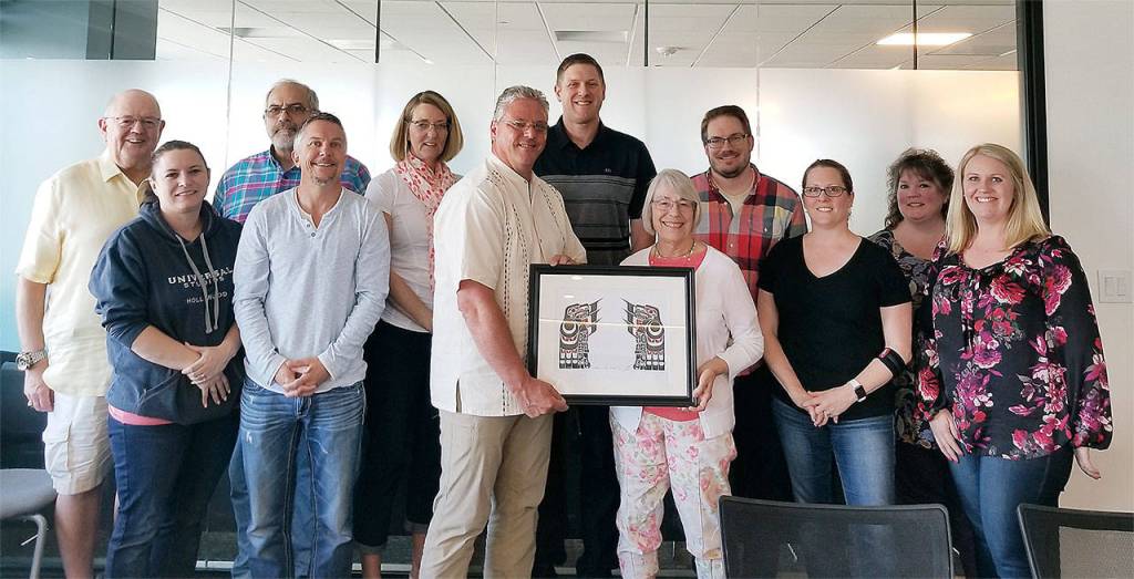 Morehouse presented Kagi with a “Guardians of the People” painting by Lummi artist Jason LaClair.
