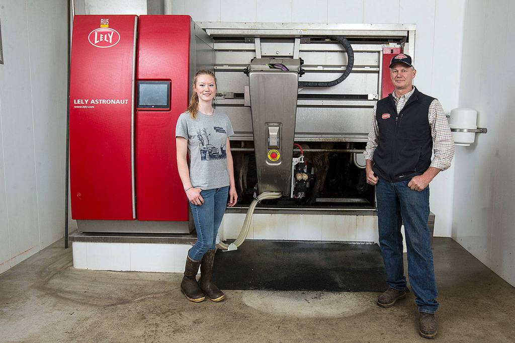 The bright red, shiny robot would look more at home on a spaceship than in a Ferndale cow barn. But the cows aren’t fazed — in fact they line up for the chance to walk up to one of these cutting edge robotic machines and take their turn getting milked.