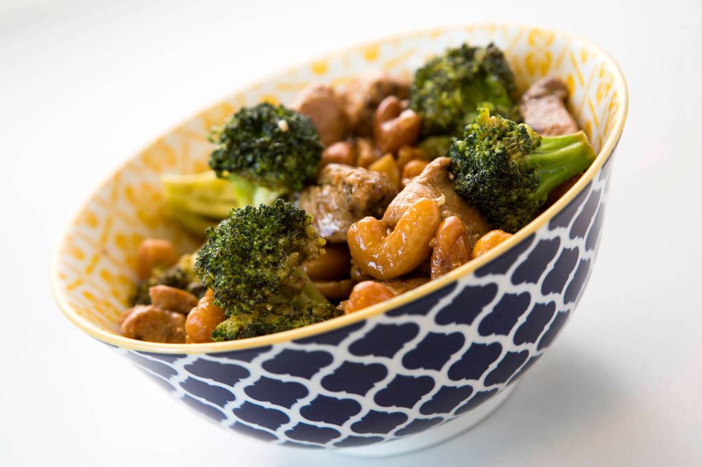 This recipe for cashew chicken has some surprises. While it has the basics of the classic dish — chicken, cashews, broccoli, ginger and garlic — it also calls for coconut aminos and honey.