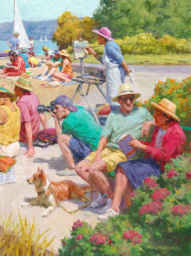 This year’s festival poster is “At the Beach,” by Renton artist Ned Mueller. “He did his research and painted the beach scene at an Edmonds beach,” said Patti Sullivan, the festival’s marketing director. “He has such a nice nostalgia about his art.”