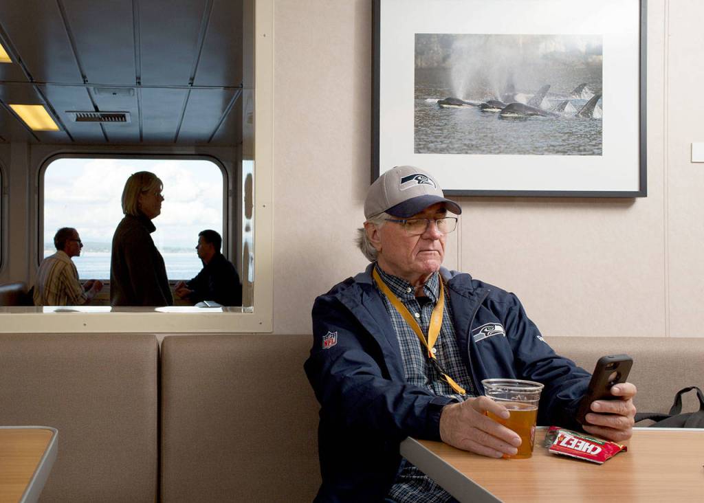 Commuter Tim French, of Whidbey Island, likes to get a brew on the boat after work on the mainland. “It’s a nice decompression,” he said. “I like the variety of things they have.”