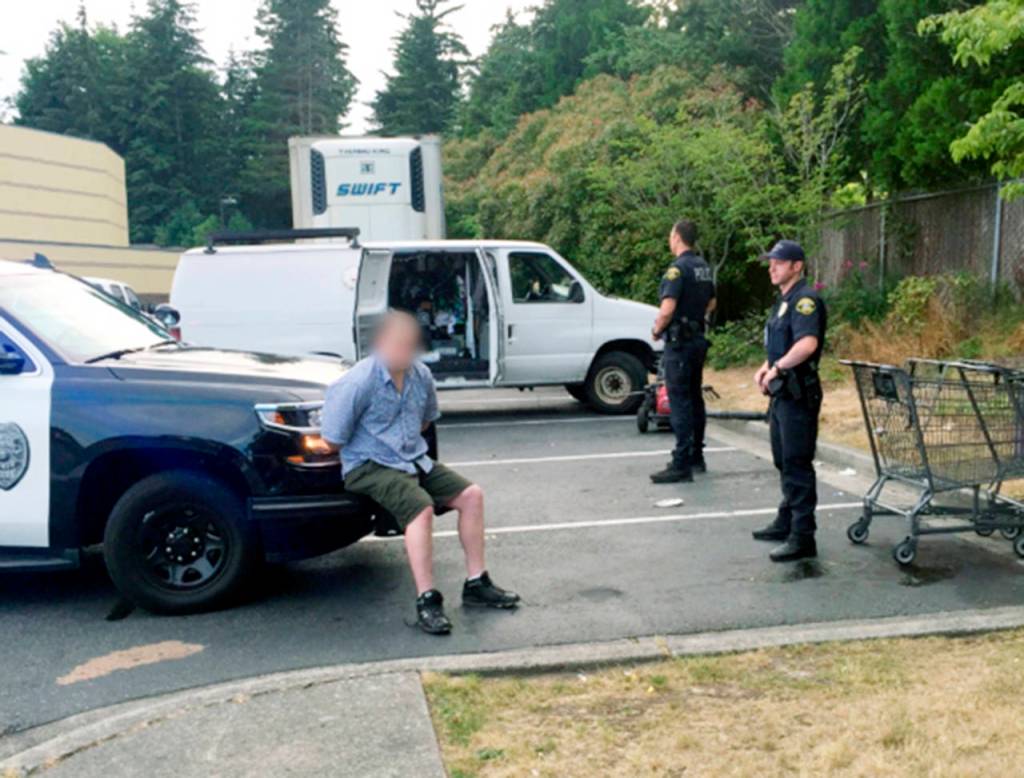 A family member of the victim reportedly spotted the gear on the app, and the victim notified police. An officer noticed that the same person listing the allegedly stolen equipment was selling a truck tailgate that matched a previously reported vehicle prowl in Lynnwood. That led to the Sunday sting at Dick’s Drive-In in Edmonds.