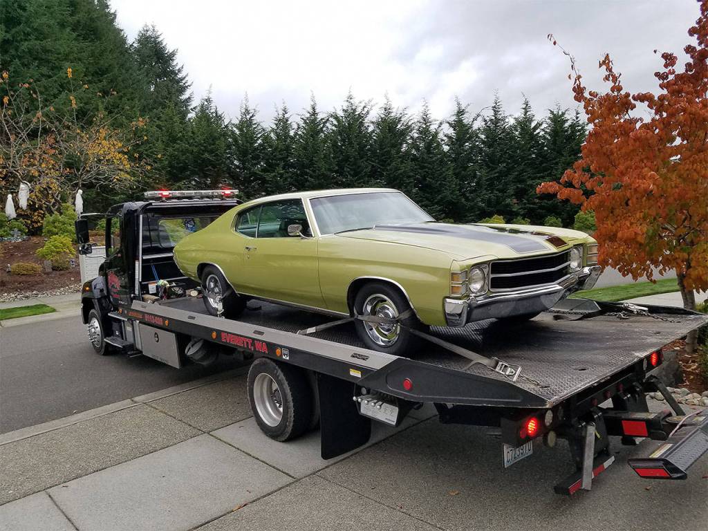 Ken Gross’ 1971 Chevelle was the latest victim of what he dubs “The Big Dip” on Highway 96 (128th Street) near McCollum Park in south Everett. The car hit one of the dips and damaged the drivetrain’s bellhousing. Black gouges marked the roadway.