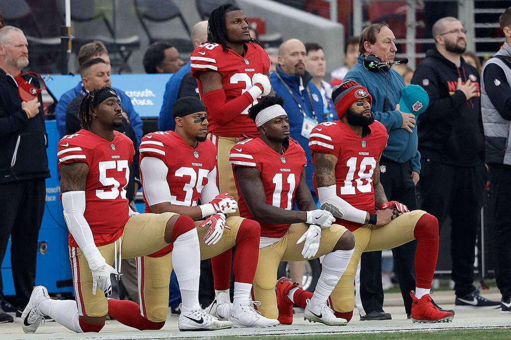 In 2016, then-49ers quarterback, Colin Kaepernick began protesting police brutality and social injustice by kneeling during the national anthem, and the demonstration spread to other players and teams. It became one of the most controversial and sensitive issues in the NFL, with players saying their messages last year were being misconstrued, while others — including President Donald Trump — called them unpatriotic. Trump even said NFL owners should fire any player who refused to stand during the anthem.