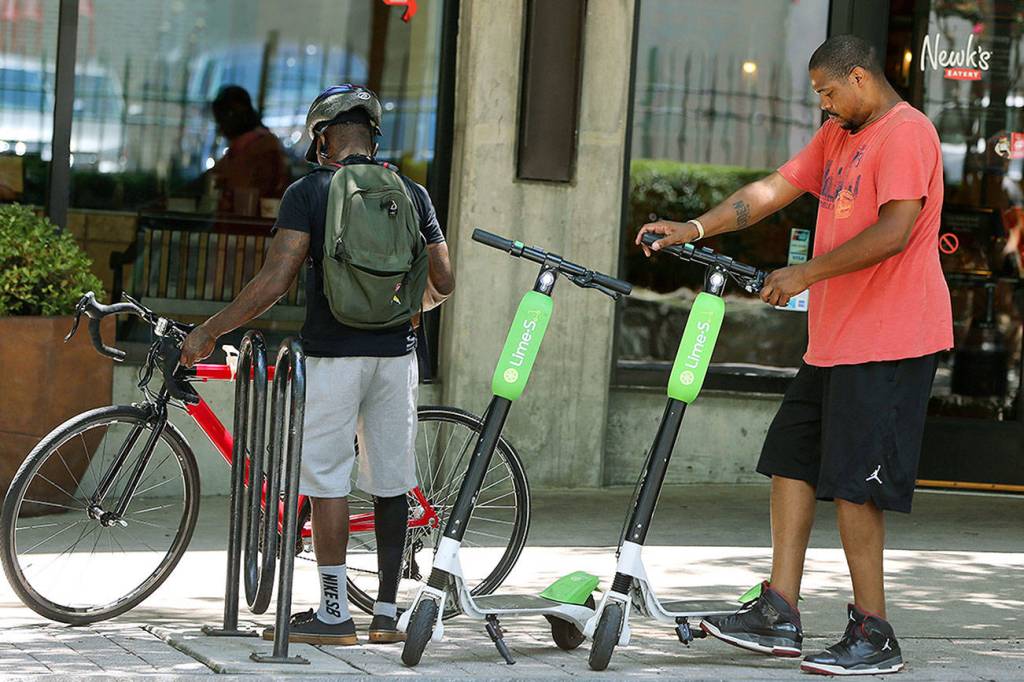 It’s not long before they attract attention — and it’s not always positive: Lawsuits and cease-and-desist orders have sometimes followed the arrival of California-based companies Bird Rides Inc., LimeBike and Spin, with city officials saying the scooters aren’t legal to operate on streets or the sidewalks where they get dangerously close to pedestrians. And because the scooters are dockless, they’re parked anywhere when a ride is over, causing cities heartburn over blocked sidewalks.
