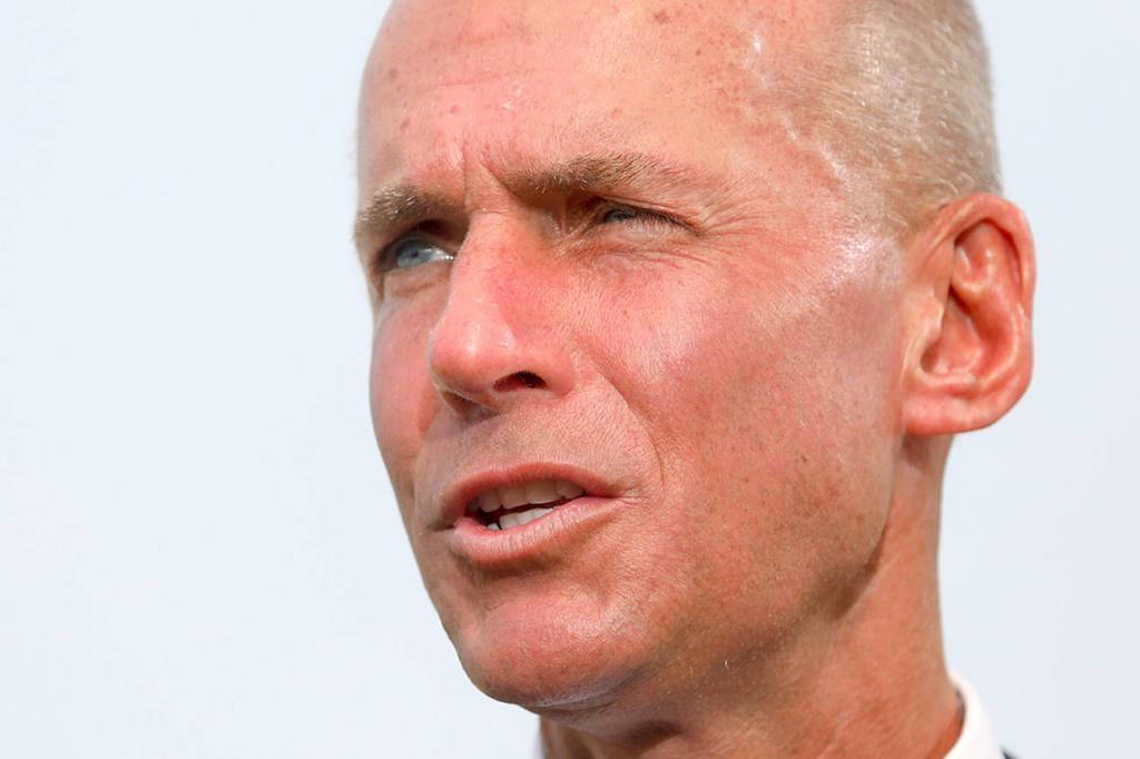 Boeing CEO Dennis Muilenburg at the Farnborough International Airshow in Farnborough, England, on Monday. (Simon Dawson / Bloomberg News)