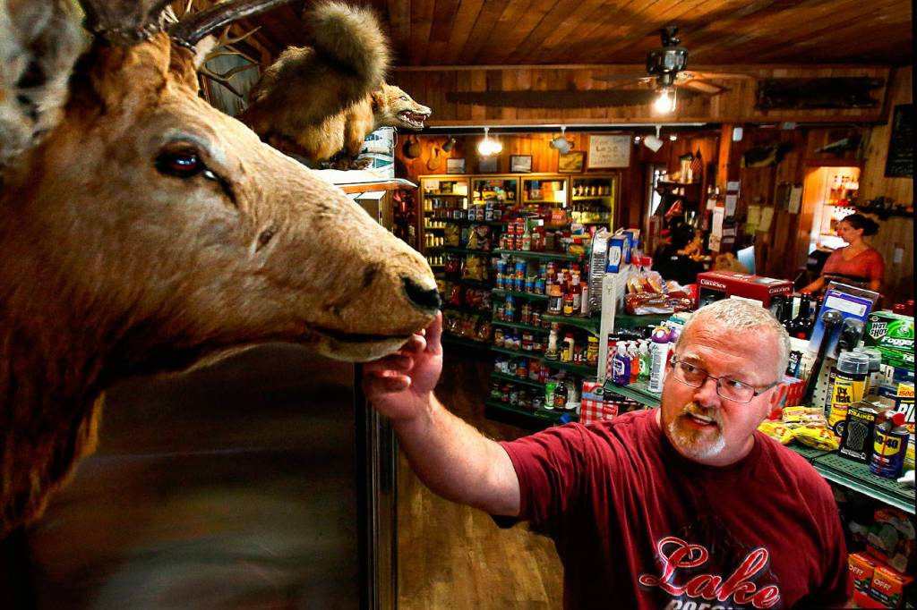 Lake Roesiger’s population is a mix of year-round residents and cabin owners there for summer vacations, weekends and holidays, Hickson said. His store’s decor — with animal-head trophies, antiques and snapshots of people holding fish they caught — is a throwback to the days when log cabins were the norm and there were few fancy lakeside homes.