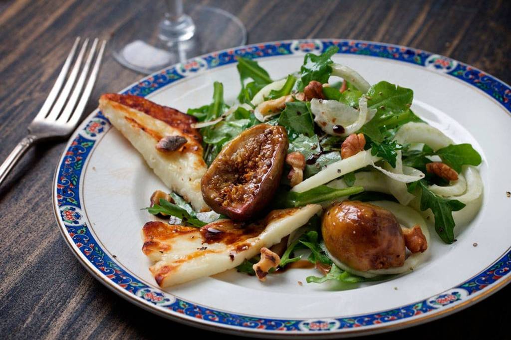 Grilled halloumi salad with figs and balsamic