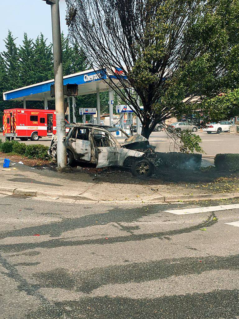The car caught on fire, said Everett Police Sgt. Maryjane Hacker.