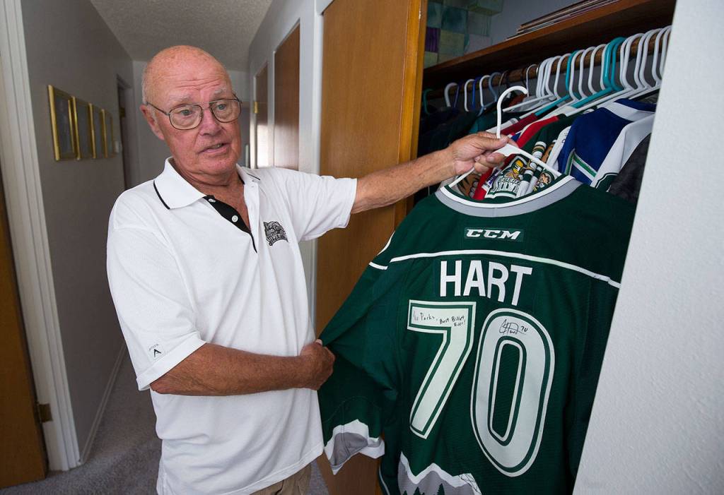 A closet in Parker Fowlds’ Everett home contains a stash of hockey jerseys, each radiating in forest green and white. On the back are the names and numbers of some of the most illustrious Everett Silvertips players from throughout the franchise’s 15-year history: Mueller No. 88, Murray No. 27, Hart No. 70. Perusing the collection is a little like taking a stroll through the franchise history book.
