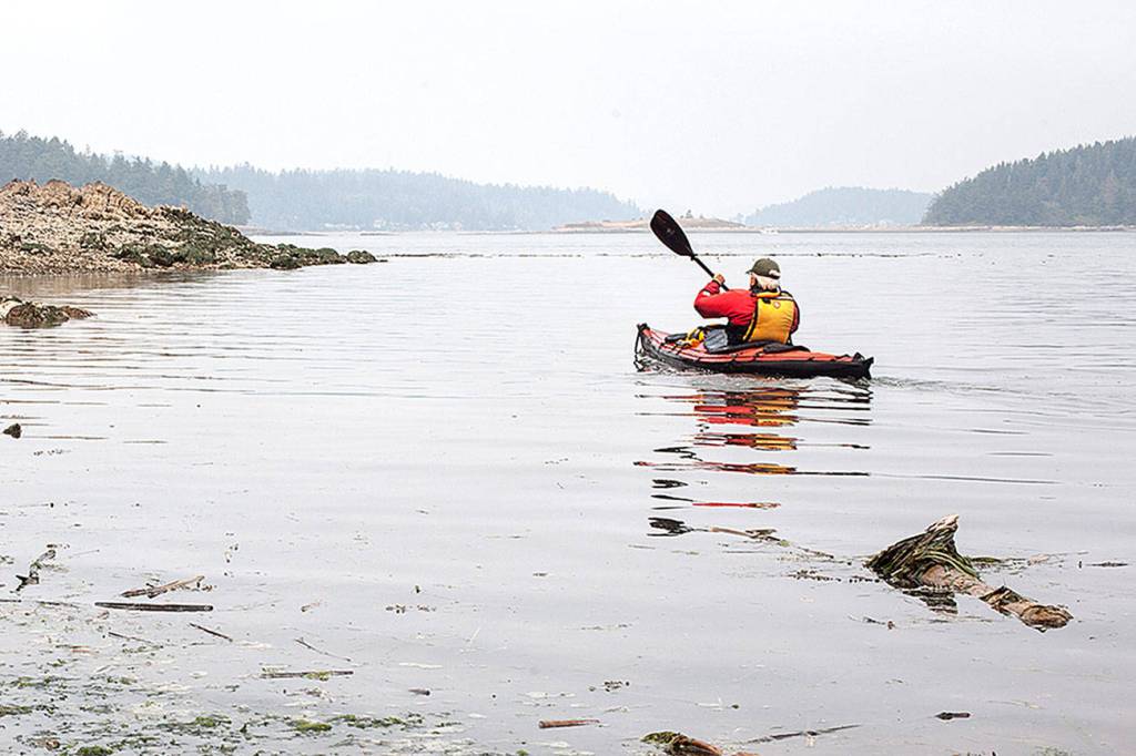 The hazy, smoky August skies weighed heavy as Don Crook and Andrée Hurley launched their kayaks from Snee Oosh Beach on the Swinomish Reservation near La Conner.