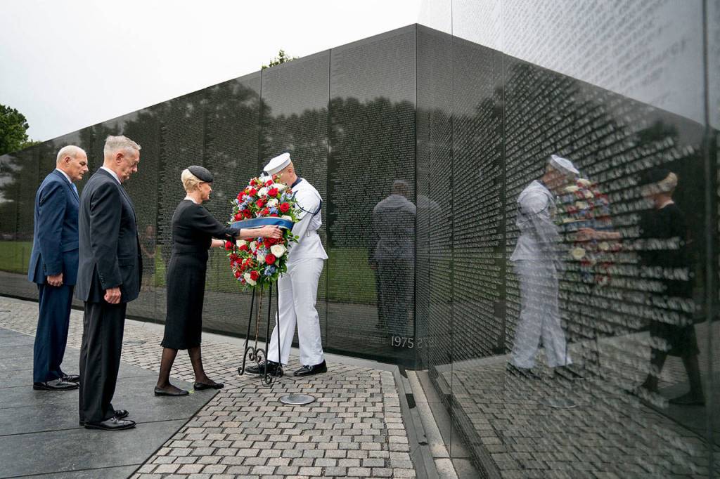 McCain’s motorcade arrived from the Capitol, where he laid in state overnight. Along the way the procession stopped at the Vietnam Veterans Memorial, where McCain’s wife, Cindy, placed a wreath.