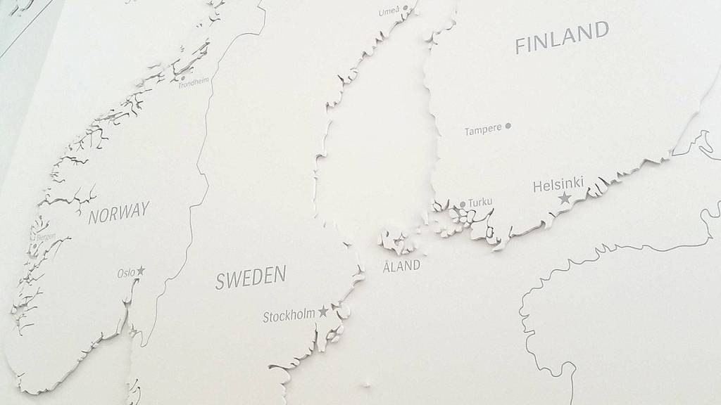 In late August, my husband and I visited the Nordic Museum in Ballard. It’s in a new building on NW Market Street, and the architecture is absolutely stunning. The first thing that greets visitors is a giant map on the wall. Unlike other maps, which usually show Sweden, Norway, Iceland, Denmark and Finland as tiny dots compared to the rest of the globe, this map puts the five Nordic countries front and center.