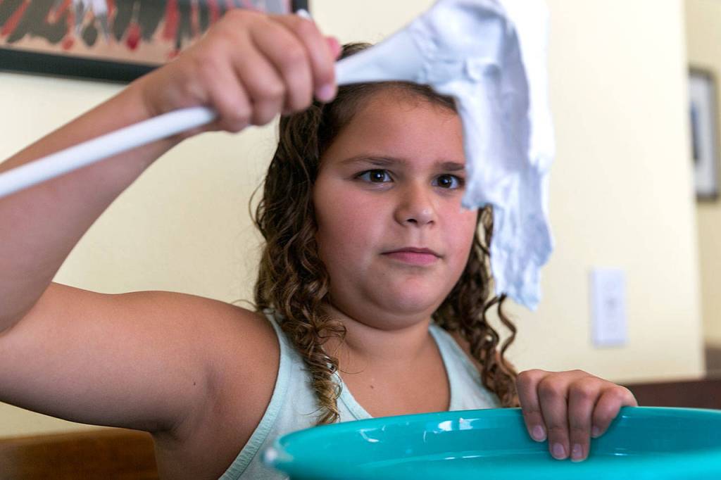 “It’s an arm workout,” said Amaya, as she and Allyea made fluffy slime — and a minor mess — at the kitchen table of their Marysville home.