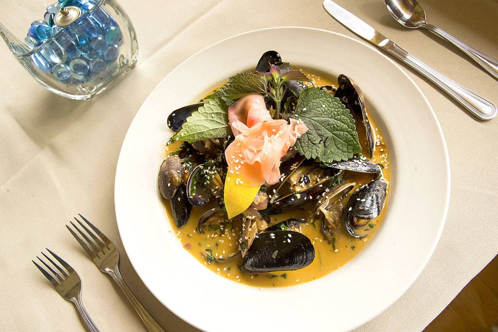 “You wouldn’t automatically put it (curry) with mussels and clams,” Stewart said. “But, because of the coconut milk and the kaffir lime leaves, it really backs up the flavor of the mussels and it really complements it.”