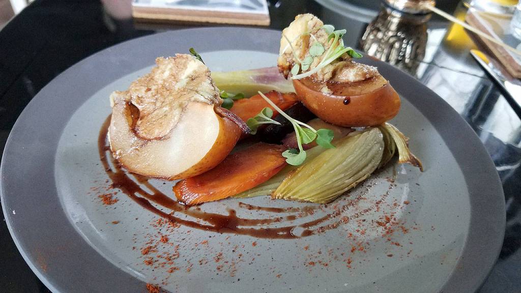 “It did not disappoint,” he said “The vegan prosciutto was a worthy substitute to bacon, while the dates were delicious.”