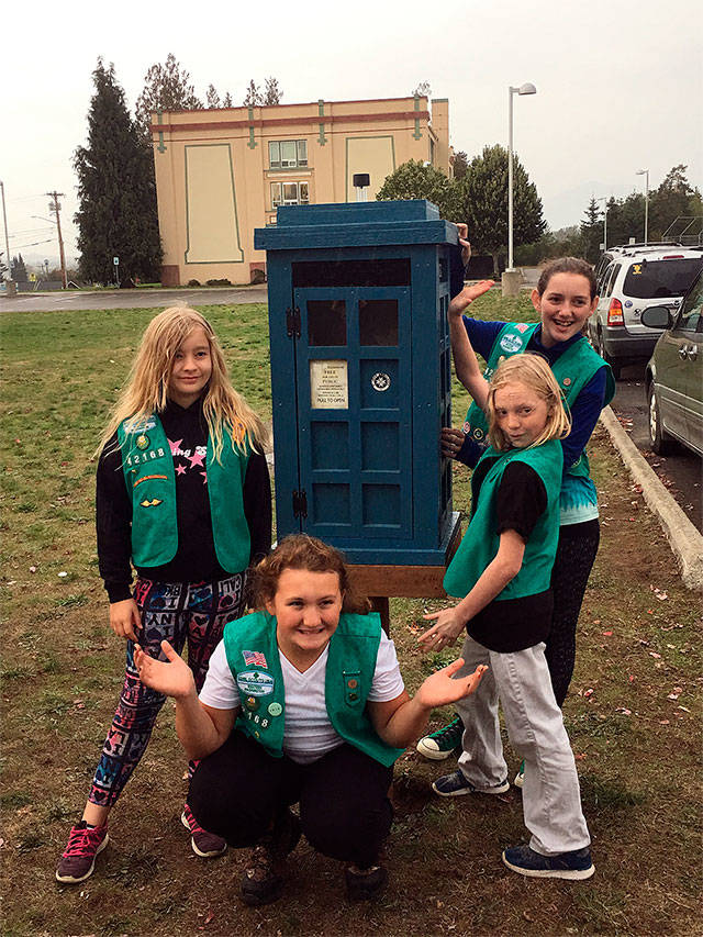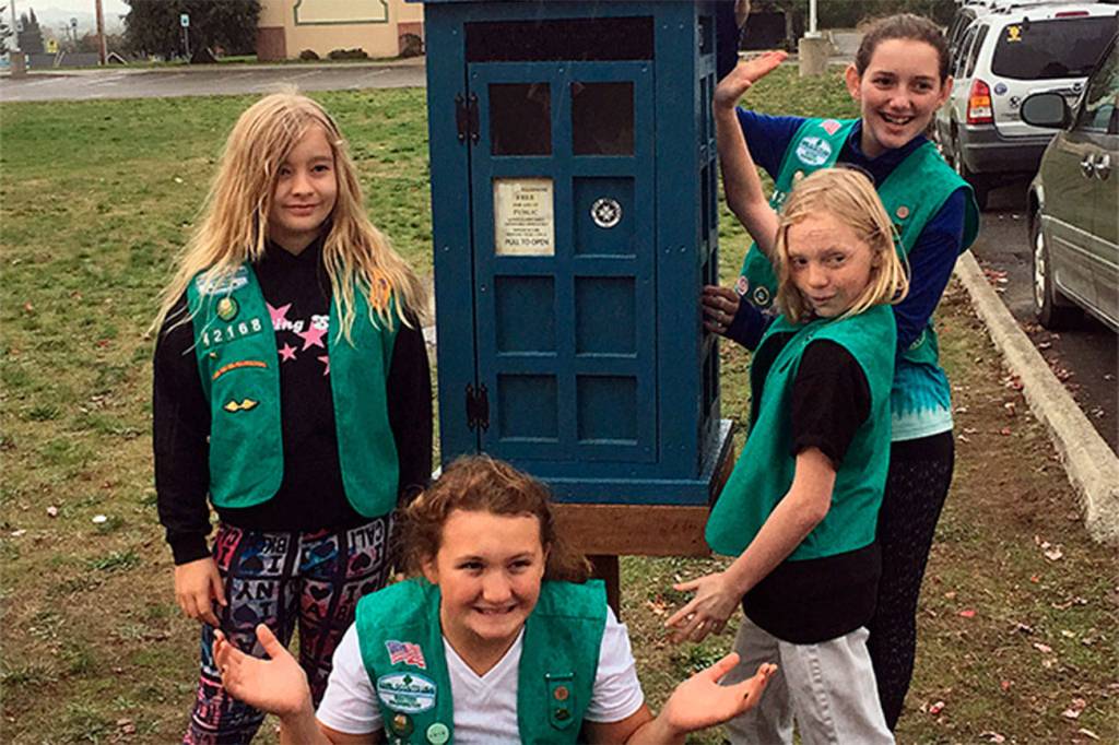 Scouts Ivy Heart, Riliegh Carr, Patience Hartman and Abby Stevenson designed, built and installed a Little Free Library in the shape of Dr. Who’s TARDIS on Third Street, just west of the entrance to Presidents Elementary School. In addition, they refurbished the Little Free Library that was originally installed at Haller Park. The refurbished library has been relocated to Terrace Park.