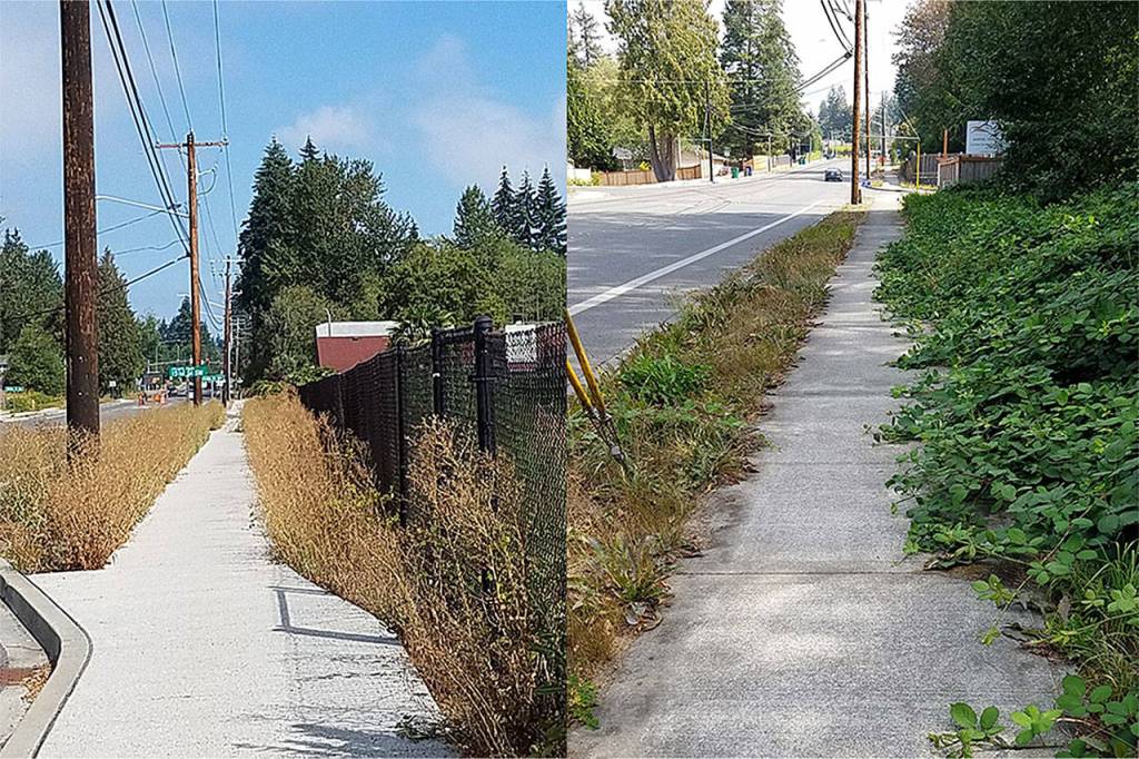 Robins wrote: “A few years ago, Beverly Park Road and 52nd Avenue W were widened. It included sidewalks, and the section in Snohomish County has planting strips between the sidewalk and the road. These have never been maintained and are overgrown with weeds. When strips like this are installed, there should be some plan for maintenance. It would look better if there was concrete instead of the ugly unmaintained strips.”