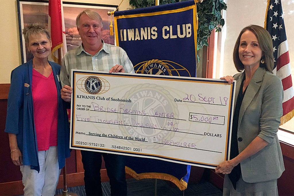 The Kiwanis Club of Snohomish recently donated $5,000 to The Bridge Receiving Center of Lake Stevens, which aims to help house children as they enter the foster care system.
