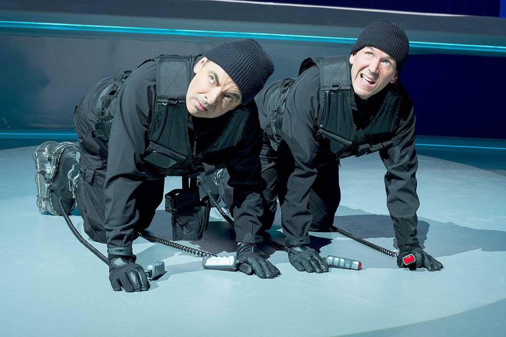 Those movies were built around Atkinson (still best known as the accident-prone Mr. Bean), whose willingness to fall out of windows and slide down staircases while clad in a suit of armor remains undiminished in “Johnny English Strikes Again.”
