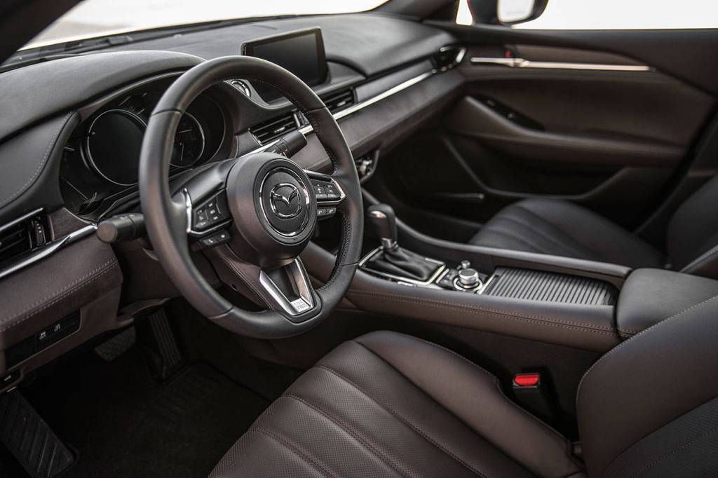 The Mazda6 Signature is fitted with Mazda’s new 2.5-liter turbocharged four-cylinder engine, which generates 227 horsepower while consuming regular unleaded (87) gasoline. If you’re willing to serve it premium unleaded (93), output will rise to 250 horsepower. In either case, peak torque is 310 pound-feet and it’s reachable as early as 2,000 rpm.