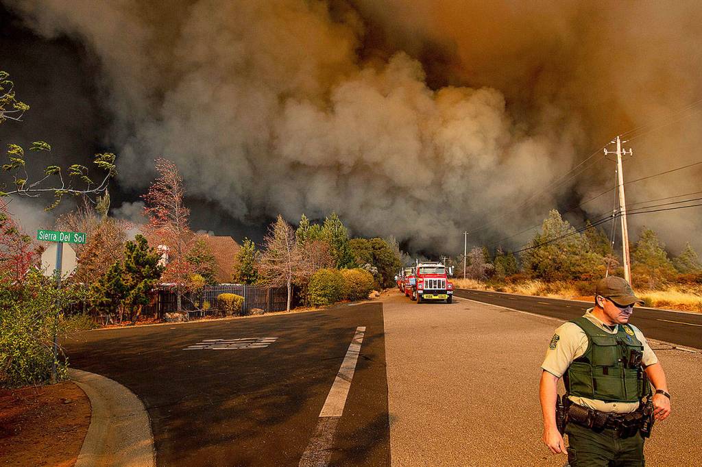 PARADISE, Calif. — A fast-moving wildfire that ravaged a Northern California town Thursday sent residents racing to escape on roads that turned into tunnels of fire as thick smoke darkened the daytime sky. Several thousand buildings were destroyed by flames, a California Department of Forestry and Fire Protection official said.